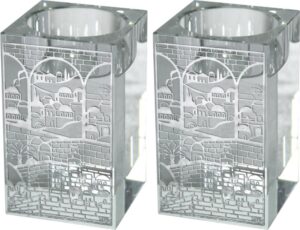 זוג פמוטי קריסטל עם חיתוכי לייזר "ירושלים" כסף 15.5 ס"מ